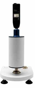 Depending on configuration, the measuring pin is lifted via the pneumatic foot pedal or manually with the lever mounted on the side, and the sample is placed in the measurement area. Then the pedal or lever is released, and the measuring pin lowers at a speed limited by the throttle onto the sample. The digital measurement gauge displays the result of the measurement.