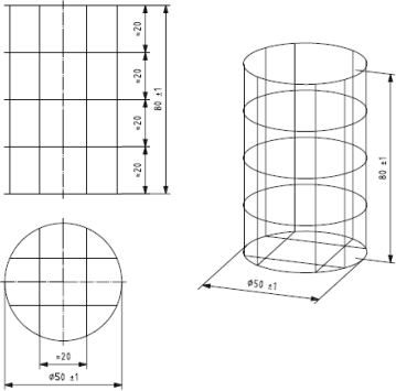 • A diameter of 0,5 mm to yield a total mass of the cylindrical basket of (3 ± 0,1) g, having a material density of 8,05 g/cm3.