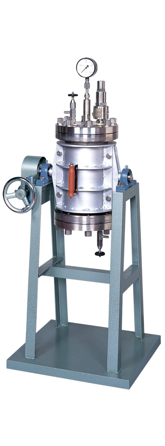 This device aims to enhance safety and ease operations before and after a chip digestion test, such as preparing chips into the cooking chamber and taking them out upon completion. Chips can be fed into the chamber as it is erected. After cooking, the lid is removed, and the autoclave is inverted using the handle for easy retrieval of digested pulp.